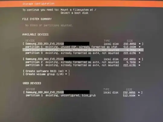 Then, using the "Custom storage layout" during the Ubuntu Server 20.04 installation: