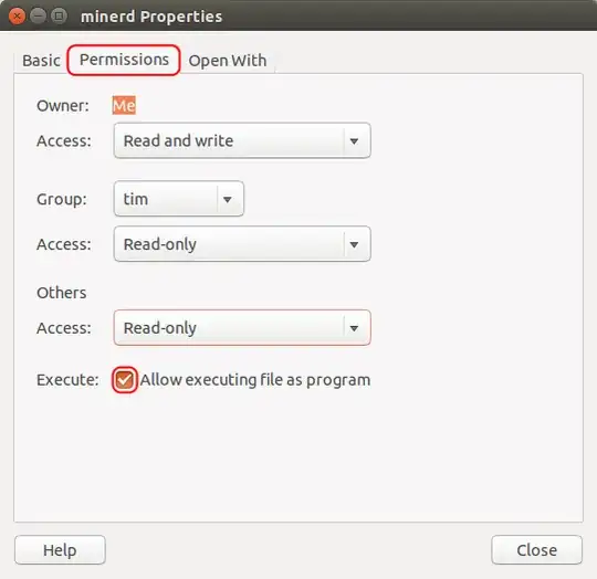 Go to the permissions tab, then tick the box Execute: [✓] Allow executing file as program.