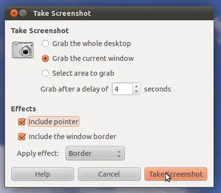 Note: This method does not work properly under Unity and more than likely won't work on any other WM with rounded borders, either. You can still capture images of course, but the drop shadow will be applied not only to the window but also to parts of the background. You might be able to troubleshoot this by replacing scrot with gnome-screenshot and adjust the script accordingly.