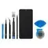 Entferne jegliches Klebeband von der Rückseite des Displays und überprüfe den Ausschnitt für das Displaykabel und die Frontkamera.