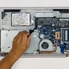 Use your fingers or an opening tool to gently remove the back panel from the bottom of the laptop.