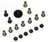 Vier 5,6 mm schwarze T9 Torx Schrauben, in den mit "D", "E", "J" und "K" markierten Löchern.