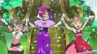 Am nächsten Tag führt Serena ihre ahnungslosen Freunde zum Zentrum von Illumina City. Sie sehen eine Menschenmenge, die sich dort versammelt hat, als Professor Platan sie einholt und erklärt, dass eine Show-Performance stattfinden soll und dass dies Serenas Idee war. Sannah, Tierno, Trovato und Sawyer erscheinen nun ebenfalls und bieten ihre Hilfe an. Sawyer sagt, dass er die vergangenen Ereignisse am Fernseher mitverfolgt und sich deshalb Sorgen um die Freunde gemacht habe, woraufhin Ash erwidert, dass nun alles in Ordnung sei und es ihnen allen gut gehe. Von der Bühne aus begrüßt der Professor dann das Publikum und eröffnet die Vorführung. Ein Feuerwerk wird gezündet und Serena und Sannah betreten mit ihren Pokémon ebenfalls die Bühne. Sie befehlen Rutena und Bisaknosp Flammenwurf und Solarstrahl einzusetzen, die kollidieren, sodass Glitzer entsteht, was die Zuschauer beeindruckt. Die Bürger der Stadt erkennen, dass beide am Finale der Meisterinnenklasse teilgenommen haben. Während sie die Show ebenfalls begeistert verfolgen, werden Ash und die Anderen von Michaela und Alain gegrüßt. Letzter erklärt, dass er Serena noch nie zuvor hat performen sehen. Währenddessen schaut Team Rocket aus einem Gebüsch heraus zu und James sagt, dass dies der perfekte Moment sei, Pikachu zu schnappen, da alle abgelenkt wären. Jessie ist von der Idee jedoch nicht begeistert und entscheidet sich dazu, selbst mit Pumpdjinn aufzutreten. Sie befiehlt den Einsatz von Samenbomben, die in der Luft explodieren und ebenfalls glitzernde Funken erzeugen. Serena und Sannah grüßen Jessie und entscheiden, zu Dritt zusammenzuarbeiten. Das Publikum ist begeistert und beginnt zu tanzen. Michaela fordert Alain ebenfalls dazu auf, doch dieser ist zurückhaltend und weigert sich. Platan sagt jedoch, dass er auch Spaß haben solle. Jessie ist begeistert von dem Gefühl auf der Bühne zu stehen und entscheidet, in Kalos zu bleiben um Kalos-Königin werden zu können, was ihre Teammitglieder wütend macht. Sannah und Serena tanzen ebenfalls und sehen, wie glücklich alle sind. Primula taucht nun ebenfalls auf und schaut sich alles an. Serenas Feelinara, Pumpdjinn und Sannahs Flabébé setzen Feenbrise, Samenbomben und Mondgewalt ein, und das Publikum jubelt. Primula ist zufrieden und ruft ihre überraschte Tochter.