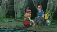 Beide sind unverletzt und Serena dankt Ash, der nun bemerkt, dass sein Fuß verletzt ist. Serena entschuldigt sich, doch Ash gibt vor, dass es nicht so schlimm sei. Heureka und Citro holen nachdem sie davon erfahren haben Hilfe, während Serena sich um Ashs Schwellung kümmert. Pikachu, welches bei Ash ist, da es sich Sorgen gemacht und ihm deshalb gefolgt ist, dankt Ash. Serena holt Fynx heraus und sagt, dass sie auch ein gutes Team seien und sie gibt ihm ein Stöckchen zum essen. Citro und Heureka erreichen derweil Platan und informieren ihn, der ein Rettungsteam zusammenstellen will. Ash erinnert Serena zwischenzeitlich daran, dass sie noch den Film drehen müssen und erklärt, dass alle Erlebnisse aus dem Camp, auch der Angelwettbewerb, ihm beim Kämpfen helfen werden. Ash betont nochmals, dass er alles für seinen Traum Pokémon-Meister zu werden, geben wird. Serena sagt, dass er ein außergewöhnlicher Mensch sei und errötet. Sie denkt nochmals darüber nach, wie es ist einen Traum zu haben und erläutert während sie Ashs Fuß kühlt, dass sie sich gelegentlich fragt, was ihr Traum sei. Ash macht ihr Mut und sagt, dass sie dies gemeinsam mit Fynx herausfinden wird. Platan taucht auf und sagt, dass das Hilfsteam auf dem Weg ist. Dieses besteht aus dem verkleideten Team Rocket. Die Kinder bedanken sich, nachdem sie gerettet sind.