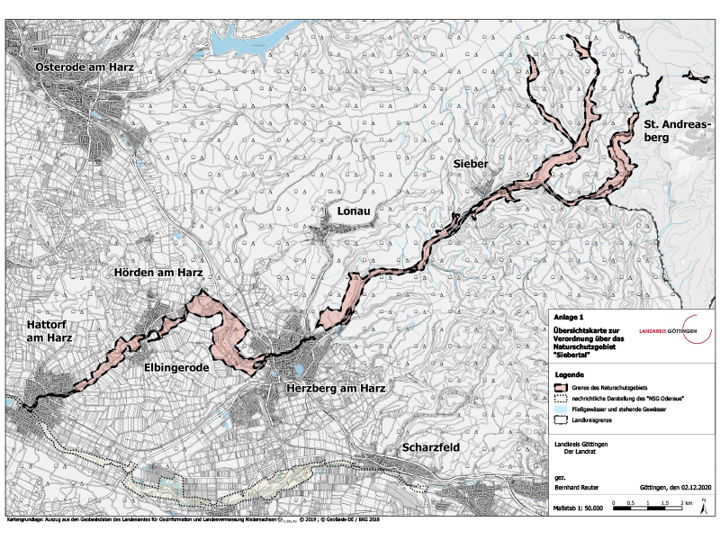 - ↑ Lageplan zur Verordnung der Bezirksregierung über das Naturschutzgebiet „Siebertal“, Karte 1. Niedersächsischer Landesbetrieb für Wasserwirtschaft, Küsten- und Naturschutz. Abgerufen am 14. Mai 2019.