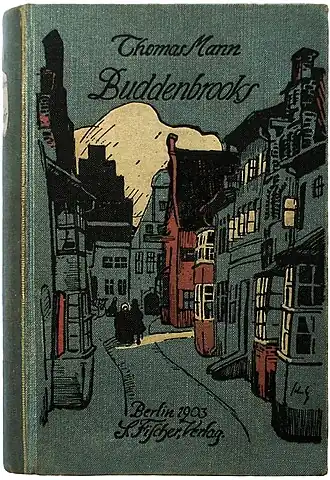 Buddenbrooks. Verfall einer Familie. Roman. 2. Auflage (1903) 2 Bände in 1, 566 S., 539 S., 5 S. Verlags-Anzeigen.