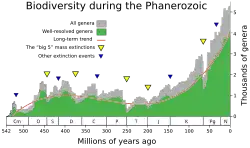 Biodiversität ist die Kurzform des Begriffs „biologische Vielfalt“ (englisch biological diversity; biodiversity). Die Bezeichnung biodiversity stammt ursprünglich aus dem wissenschaftlichen Umfeld der US-Naturschutzbewegung. Die Nutzung von „Biodiversität“ auch in Forschungszusammenhängen führte zu einer gewissen Politisierung des naturwissenschaftlichen Forschungsfeldes der Naturschutzbiologie. Die Etablierung des Begriffs sollte der Durchsetzung politischer Forderungen mit sozialem, ökonomischem und wissenschaftspolitischem Hintergrund dienen.[7] Der Titel des 1986 vom Evolutionsbiologen Edward O. Wilson herausgegebenen Buches Biodiversity (englische Ausgabe) war die erste weithin wahrgenommene Verwendung des Begriffs. Dem Buch war eine US-amerikanische Tagung zum Thema vorausgegangen.