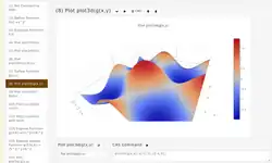- Wenn Sie die AppLSAC in ihrem Browser gestartet haben, können Sie diese WebApp CAS4Wiki für die Aktualisierung von Funktionsplots und den experimentellen Umgang mit Funktionstermen in der Wikiversity-Lernressourcen verwenden, um die Konsequenzen eine Modifikation des Funktionsterms auf die Spur (Bild einer Kurve im ) bzw. auf den Graphen zu analysieren. Sie werden in der Lage sein, die aktualisierte JSON als Befehlssequenzen zu laden und zu speichern und auch diese eigenen Befehlssequenzen in eine Wikiversity-Lernressource zu integrieren. Die Einstellung für die Farben der Graphen und der Plot-Ausschnitte bzgl x-, y- und z-Achsen können ebenfalls in der dazugehörigen JSON-Datei gespeichert und geteilt werden, dadurch werden nicht nur die CAS4Wiki-Befehlssequenzen, sondern die CAS4Wiki-Plots für alle Lernenden mit den Formatierungsinformationen reproduzierbar.