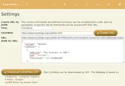 Die folgenden JSON-Datei die aus dem CAS4Wiki abgespeichert werden kann, definiert eine Liste von Befehlen, die man über einen Link ebenfalls in CAS4Wiki laden kann. Ein solche JSON-Datei enhält die folgenden Informationen: