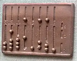 - ↑ Menninger: Zahlwort und Ziffer (1958), II, S. 104ff.; Ifrah: Universalgeschichte der Zahlen (1998), S. 136ff.; Pullan, History of the Abacus (1968), S. 16ff.