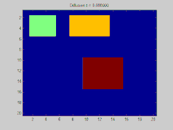 - (Version 5) (Sebastian Staib - 2019/06/27) Diese Version setzt die Diffusion mit bewegten Objekten auf den Gitterzellen um. Ein bewegtes Auto wird dabei als Objekt aus zwei Pixeln dargestellt, das sich in den Gitterzellen bewegt.