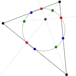 Den Kreis in der vorstehenden Aussage nennt man den Feuerbachkreis oder auch den Neun-Punkte-Kreis.