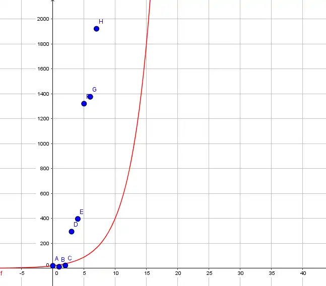 Die Wachstumsfunktion ist offensichtlich sehr ungenau, da der Funktionsgraph weit von den tatsächlichen Werten entfernt liegt. Daher führen wir einen weiteren Zyklus durch, um eine genauere Funktion zu erhalten.