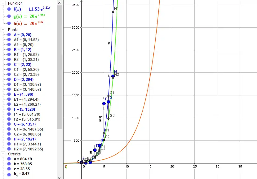 h(x)=20*e^(0,3*x)