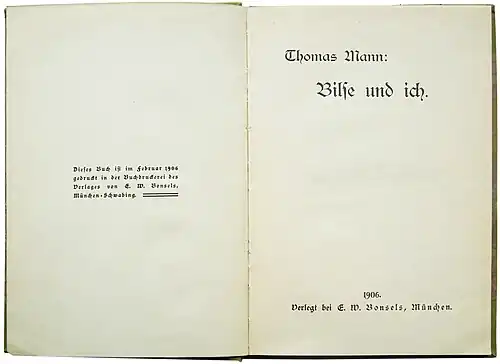 Erstausgaben Thomas Manns, Bilse und ich (1906).