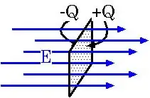 - Sie wissen, dass ein elektrisches Feld Ladungen verschieben kann. Man kann eine Verschiebungsdichte als pro Fläche verschobene Ladung definieren.