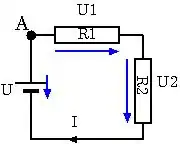 Jeder Stromkreis bildet eine Leiterschleife. Im statischen Fall gilt das kirchhoff'sche Gesetz, dass sich alle Teilspannungen (alle Änderungen des Potentials) zu Null addieren, genannt die Maschenregel. Geht man vom Punkt A (siehe Schaltung, links) aus im Kreis und addiert alle Spannungen vorzeichenrichtig, ergibt sich: