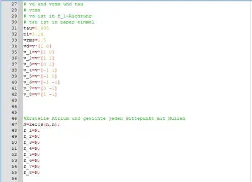 Anmerkung: Randbedingungen: eventuell in der Lattice Boltzmann Gleichung die Dichte f_k (zumindest für einige Richtungen) auf 0 setzen.