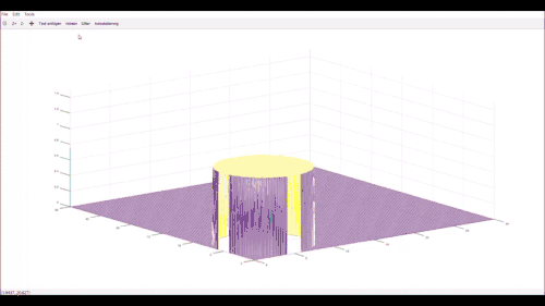 - Interessant wäre herauszufuninden, wieviel Personen befinden sich auf einer bestimmten Fläche (z.B Quadratmeter), das ist duch die Integration der Dichtefunktion über dieser Fläche zu berechnen. Damit kann man beantworten, ob es vieleicht durch eine sehr hohe Anzahl von Menschen in einem kleinem Quadrat nicht zur Massenpanik durch die zu große Enge kommen kann?