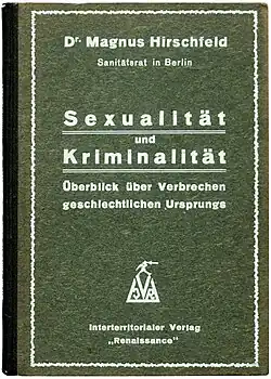 Hirschfeld, M.: Sexualität und Kriminalität. Überblick über Verbrechen geschlechtlichen Ursprungs. Wien, Berlin, Leipzig, New York: Interterritorialer Verlag „Renaissance“ 1924, Erstdruck.