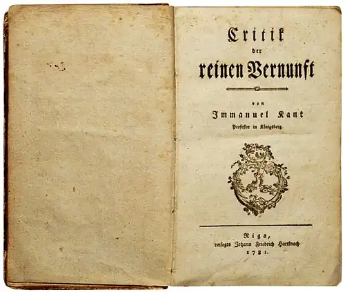 Kant, Imanuel: Critik der reinen Vernunft. Riga: J. Fr. Hartknoch 1781, 856 S. Erstausgabe.