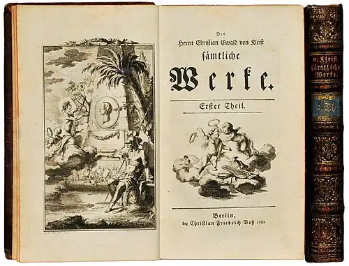 Kleist, Christian Ewald von: Sämtliche Werke. Berlin: C. F. Voß 1760, 2 Bände.