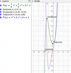 - Kurvendiskussion Funktionen plotten, Nullstellen und Extremstellen bestimmen, Ableitungen