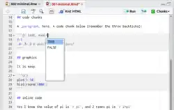 Immer wenn Syntaxhighlighting von R-Code in der Wikiversity-Lerneinheit verwendet wird, kann man daraus eine R-Codechunk für KnitR generieren.