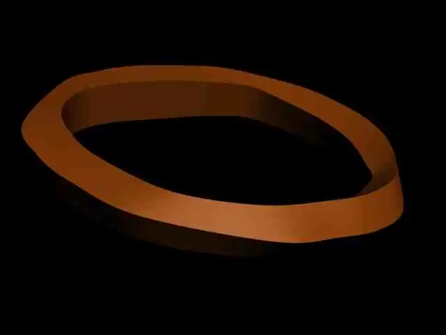 - OK, sorry... Skizze malen is grad net so möglich. Stell dir vor, wir haben einen Eisenquader mit den Maßen 5cm breit, 5 cm lang und 200cm hoch. Nun erhitzen wir die Eisenstange, bis sie verformbar wird. Nun halten wir das untere Ende fest und drehen mittels Zange das Obere Ende um 90 grad um die Höhenachse. Zuletzt biegen wir das obere Ende um 360 grad nach vorn, verschweißen das ganze, so dass wir einen kompletten Ring enthalten, der in sich um 90 Grad gebogen ist.Dann erhalten wir das Ding, was ich meine. Also einen Ring mit quadratischen Rohr-Durchschnitt, der aber nur eine einzige Fläche hat und eine Seite hat.--elis 23:25, 10. Sep 2006 (UTC)