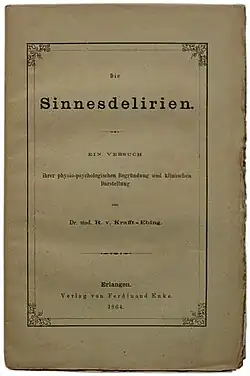 Krafft-Ebing, R. v.: Die Sinnesdelirien. Ein Versuch ihrer physiopsychologischen Begründung und klinischen Darstellung. Erlangen: F. Enke 1864, 58 Seiten.