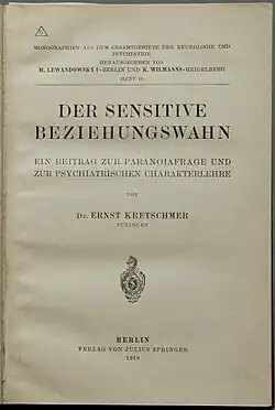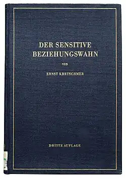Ernst Kretschmer (1888 – 1964) war Professor der Psychiatrie in Marburg (ab 1926) und in Tübingen (ab 1946). Die Monographie regte lange Zeit die wissenschaftliche Diskussion über die reaktive Entstehung des Wahns an. Kretschmer hielt bei bestimmten (sensitiv-asthenisch) Persönlichkeitsstrukturen eine Entgleisung der Erlebnisverarbeitungen für möglich mit wahnhafter Verfestigung. Die Diagnose sensitiver Beziehungswahn entspricht in vielen Zügen dem bis dahin gebrauchten Begriff Paranoia