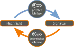 - Asymmetrische Kryptosysteme als digitale Signaturen[1]