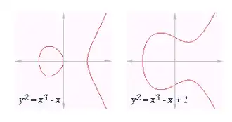Das „algebraisch“ in algebraische Kurve kommt daher, dass zu ihrer Definition nur algebraische Operationen verwendet werden dürfen, d.h. Addition und Multiplikation, nicht aber analytische Prozesse wie Limes nehmen, unendliche Summen, Approximieren, Differenzieren und Integrieren. Die erlaubten Abbildungen in unserem Kontext sind durch Polynome in mehreren Variablen gegeben. In den obigen Bildern geht es um ebene algebraische Kurven, die durch ein Polynom in zwei Variablen definiert werden. Die beiden ersten Bilder sind Graphen zu einer polynomialen Funktion in einer Variablen, sie werden beschrieben durch