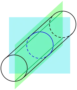 und ebenso für , da auf diesen Ebenen die beiden Zylindergleichungen identisch werden.