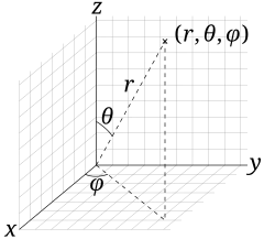 (bzw. die Einschränkung davon auf Teilmengen wie ) nennt man Kugelkoordinatenauswertung. Diese Abbildung bildet die Kugelkoordinaten auf die zugehörigen kartesischen Koordinaten ab.