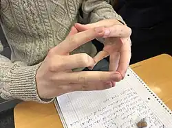 - Realisiere diejenigen Bijektionen, bei denen zwei Fingerspitzen ihr natürliches Gegenüber vertauscht berühren und die drei anderen Fingerspitzen ihr natürliches Gegenüber berühren (Transposition).