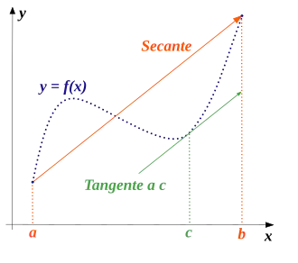 Der folgende Satz heißt Mittelwertsatz der Differentialrechnung. Er besagt beispielsweise, dass bei einem differenzierbaren eindimensionalen Bewegungsvorgang die Durchschnittsgeschwindigkeit mindestens einmal als Momentangeschwindigkeit auftritt.