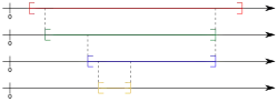 Hier ist der untere Rand des Intervalls und es gilt (und wobei zusätzlich ausgeschlossen ist, dass der rechte Rand von ist). Die Intervalllängen sind hier .