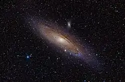 Andromedagalaxie. Sie besitzt den gleichen Durchmesser wie die Milchstraße und ist von ihr 2.500.000 Lichtjahre entfernt.