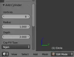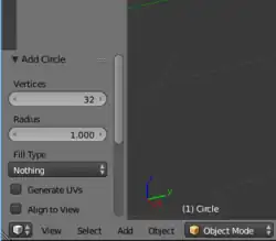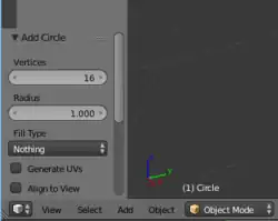 - Unter der Überschrift "Vertices" wird die Anzahl der Punkte festgelegt, aus denen der Kreis besteht, d.h. seine "Auflösung wird hier festgelegt. Diesen Wert ändern wir auf 16. (z.B.: Reinklicken (Linke Maustaste), danach Wert eingeben, Bestätigen (Enter))