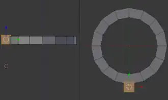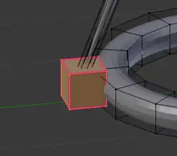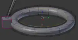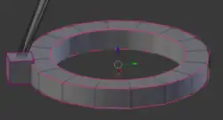 - Dort wo sich unser "Rettungsring", auch 3D-Cursor genannt, befindet, dort "spawnen"/erscheinen neu hinzugefügte Objekte. Man kann ihn über Linksklick versetzen.