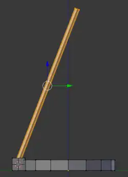 - Nun rotieren wir die Stange über R auf die gewünschte Neigung. (Hier gelten wieder die schon bekannten Methoden, um die Achsen einzuschränken (X, Y, Z usw.) Nach der Rotation muss der Zylinder gegebenenfalls wieder verschoben werden (G).