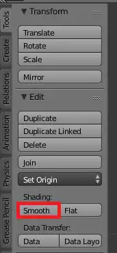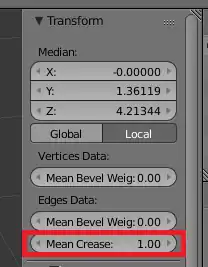 - Wenn wir nun über N das Eigenschaftspanel öffnen (rechts in 3D View), können wir oben unter "Transform" die Einstellung "Mean Crease" erkennen. Den darin enthaltenen Wert setzen wir auf 1.