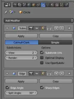 - Was tut dieser Modifier? Er verändert die Weise in der Blender die Flächen der Lampe sieht. Kurzgefasst, interpoliert nun Blender zwischen den Kanten der Flächen, wodurch diese glatt aussehen. Um jetzt schnell und leicht die Kanten wieder zu schärfen, gehen wir in den Modifiertab.