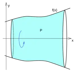 des , die entsteht, wenn man die Trajektorie der Kurve um die -Achse dreht. Wir setzen zusätzlich voraus, dass einen Homöomorphismus auf sein Bild bewirkt. Insbesondere betrachten wir den Fall, wo eine differenzierbare Funktion ist und es um die Rotationsfläche des Graphen geht.