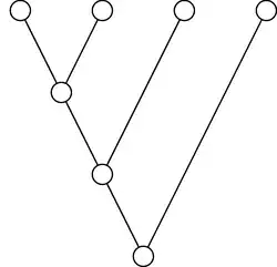 Die beiden Blätter müssen entweder auf sich selbst oder auf das jeweils andere abgebildet werden. Die an den Blättern anliegenden Knoten werden immer zusammen mit den Blättern getauscht (oder eben nicht getauscht), da sonst die Eigenschaft eines Graphhomomorphismuses verletzt wird, dass adjazente Knoten auf adjazente Knoten abgebildet werden. Der unterste Knoten muss immer auf sich selbst abgebildet werden, da er mit den darüber liegenden Knoten verbunden bleiben muss. Der Typ der Automorphismengruppe ist also .