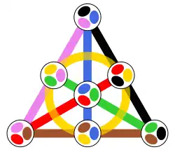 Das ist die Fano-Ebene über dem Körper mit zwei Elementen. Haben wir nicht geschafft.
