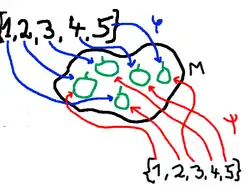 gegeben, die auf das gleiche Element abbilden. Es gilt also