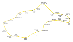Wir betrachten das Metronetz von Lissabon. Es handelt sich um einen zusammenhängenden Graphen. Der durch die gelbe Linie beschriebene Weg hat die Länge . Der Abstand von São Sebastião zu Alameda ist , der kürzeste Weg ist über Sadanha (mit der roten Linie) gegeben. Es gibt natürlich auch deutlich längere Wege zwischen diesen beiden Stationen, beispielsweise über Marquês de Pompal mit der blauen Linie, dann nach Campo Grande mit der gelben Linie und dann mit der grünen Linie nach Alameda, der die Länge besitzt. Der Durchmesser des Netzgraphen ist , dieser wird im Abstand von Reboleira zu Aeroporto angenommen. Der Radius des Graphen ist , unz zwar haben sowohl Saldana als auch São Sebastião diese Exzentrizität. Die Exzentrizität von Cidada Universitária beträgt .