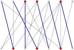 - Ein linearer Graph, wobei die Kanten abwechselnd zu bzw. zu gehören.